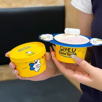Customized logo Printed Ice Cream Cup Frozen Yogurt Ice Cream Bowl Disposable Single Wall Paper Cup with Lid